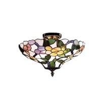 OK Dale Tiffany 7966/3LTF Peony Semi-Flush Mount Light, Antique Brass and Art Glass Shade