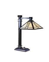 Hey Dale Tiffany 7438/758 Oak Park Mission Table Lamp, Antique Bronze/Verde and Art Glass Shade