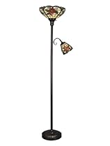 Dale Tiffany Lamps TR90030 with the Peony Tiffany style torchiere floor lamp Uses 1 x 100W (E27) and 1 x 60W (E27) bulbs (not included) Beautiful Antique Golden Sand Finish And